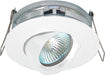 Luminaria tipo ojo de buey basculante para incrustar para bombilla GU10 LED, fabricada en aluminio inyectado con acabado de pintura electroestática color blanco. Esta luminaria es ideal para iluminar las zonas sociales del interior de tu casa.