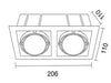 Luminaria tipo kardan doble cuadrada basculante para incrustar con bombillas GU10 LED, fabricada en aluminio inyectado con acabado de pintura electroestática color blanco. Esta luminaria es ideal para locales comerciales, es una luminaria robusta que da un toque de elegancia a tu negocio