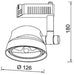 Luminaria tipo spot (Track light) para incrustar en riel eléctrico ecualizable con bombilla AR111 LED, fabricado en aluminio inyectado con acabado de pintura electroestática color blanco. Esta luminaria es especial para locales comerciales. Es una luminaria con un ángulo cerrado que permite enfocar la iluminación hacia tus productos.