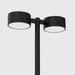 Luminaria tipo poste con brazo doble circular diseñada con módulos LED. Conformada en su parte interna con un disipador en aluminio y un difusor PMMA opal liso. Base en acero con pintura electroestática. Esta luminaria es idea para las áreas comunes, parques, plazoletas o circulaciones exteriores.
